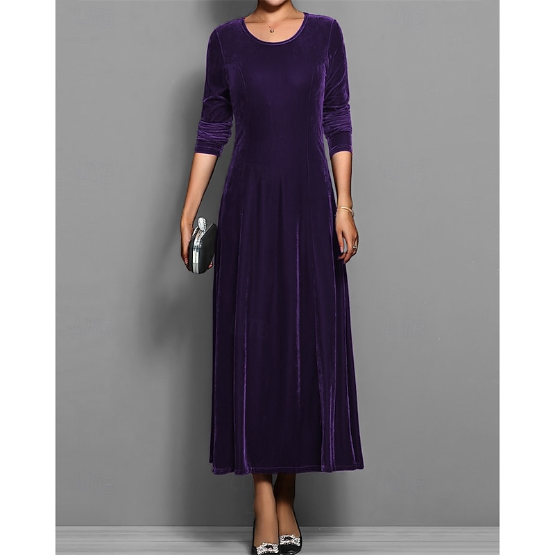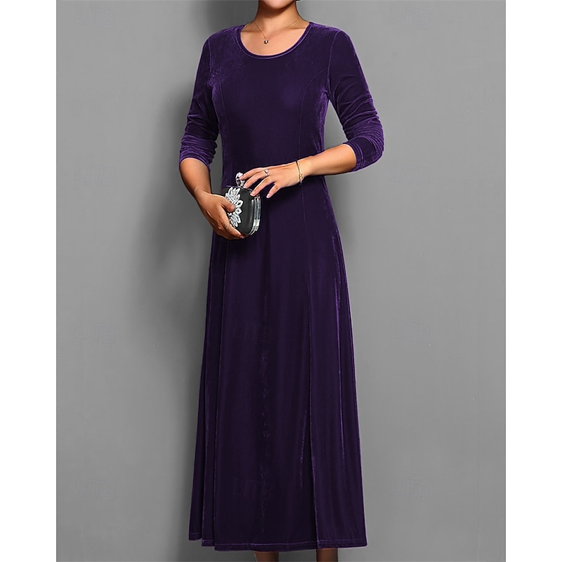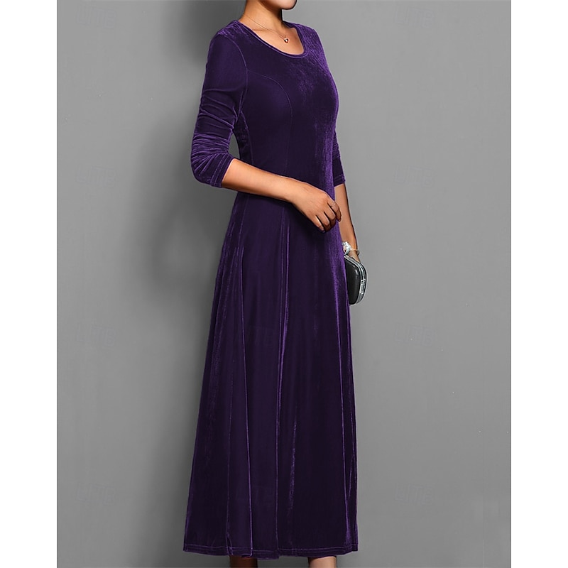 HOT ! Women's Long Dress Maxi Dress Velvet Dress Cocktail Dress Elegant Fashion Modern Evening Party Weekend Regular Fit Plain 3/4 Length Sleeve Crew Neck Black Red Blue Purple Spring Fall