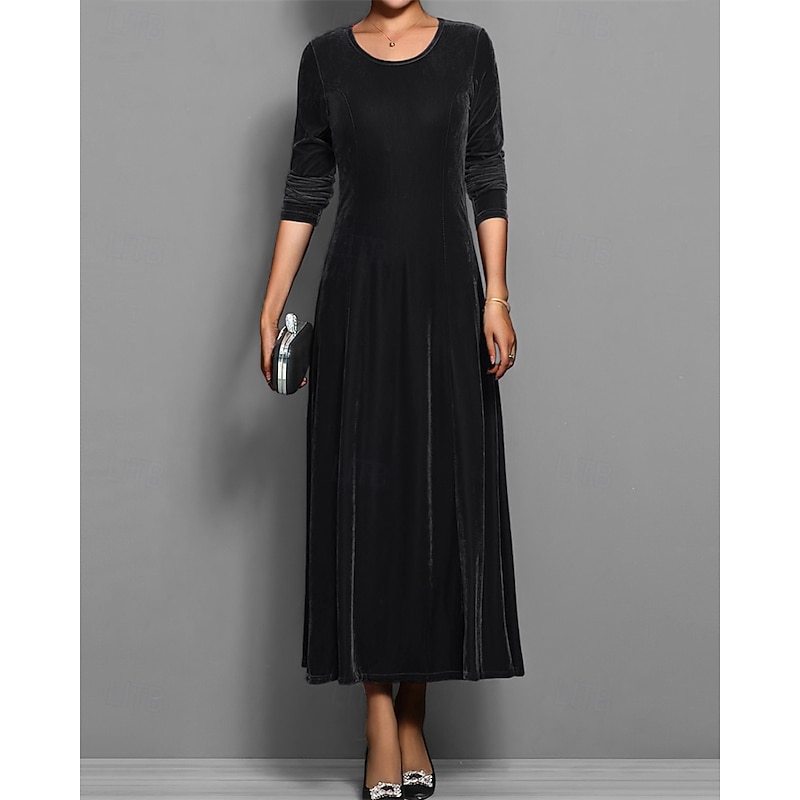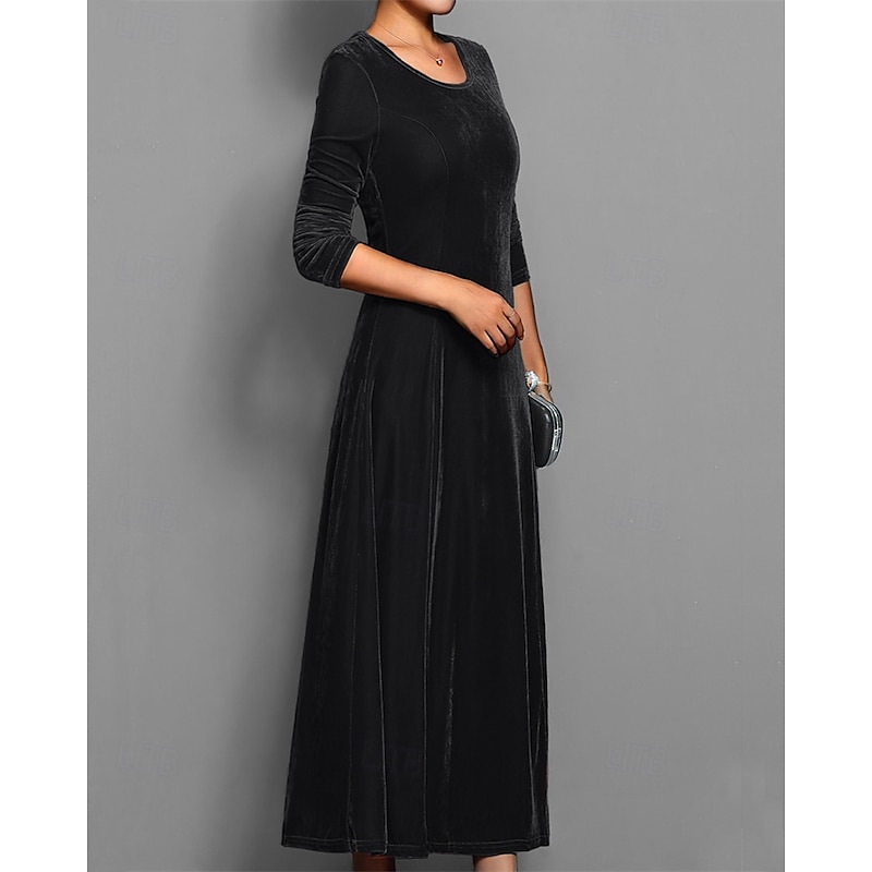 More information about Women's Long Dress Maxi Dress Velvet Dress Cocktail Dress Elegant Fashion Modern Evening Party Weekend Regular Fit Plain 3/4 Length Sleeve Crew Neck Black Red Blue Purple Spring Fall