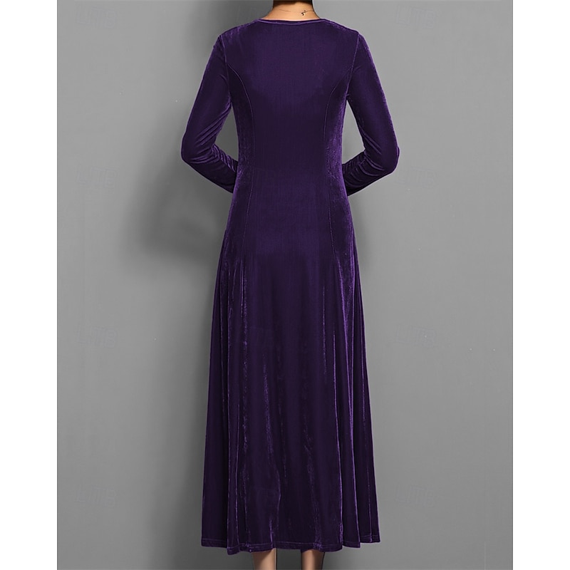 Women's Long Dress Maxi Dress Velvet Dress Cocktail Dress Elegant Fashion Modern Evening Party Weekend Regular Fit Plain 3/4 Length Sleeve Crew Neck Black Red Blue Purple Spring Fall 9