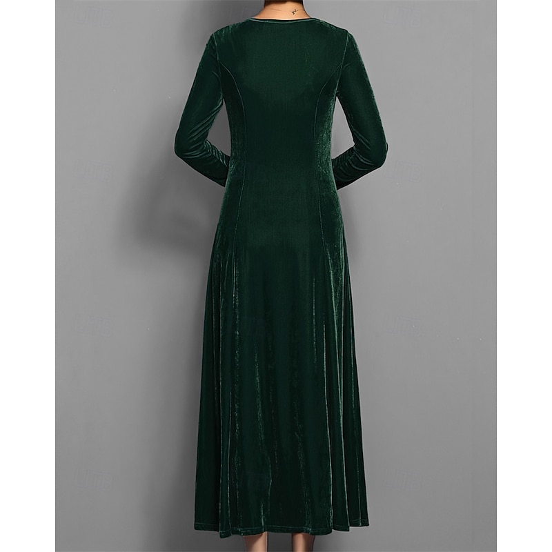 Women's Long Dress Maxi Dress Velvet Dress Cocktail Dress Elegant Fashion Modern Evening Party Weekend Regular Fit Plain 3/4 Length Sleeve Crew Neck Black Red Blue Purple Spring Fall 11