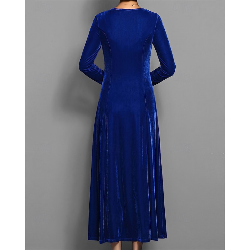Women's Long Dress Maxi Dress Velvet Dress Cocktail Dress Elegant Fashion Modern Evening Party Weekend Regular Fit Plain 3/4 Length Sleeve Crew Neck Black Red Blue Purple Spring Fall 22