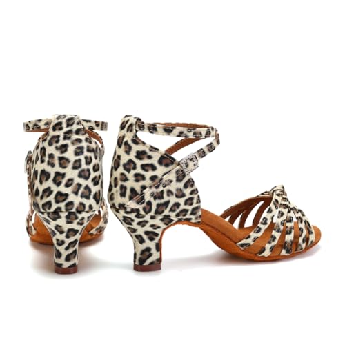 Women Latin Dance Shoes Satin Ballroom Salsa Professional Practice Dancing Shoes, Model EM-217GB-5 5