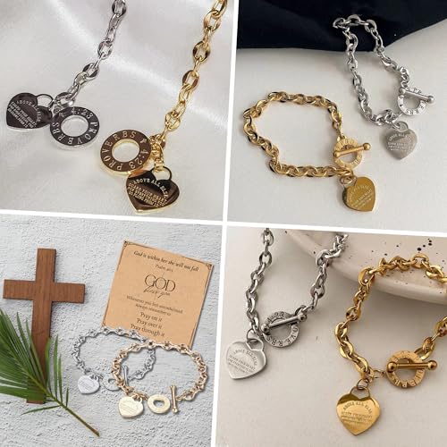 • 🌟 Elegant Religious Jewelry with Lasting Quality Crafted from high-quality stainless steel, this 18cm gold cross bracelet includes secure toggle closure and inspirational heart charm. Whether you're gifting religious bracelets for women or buying a durable prayer bracelet for women, this design blends beauty with faith.