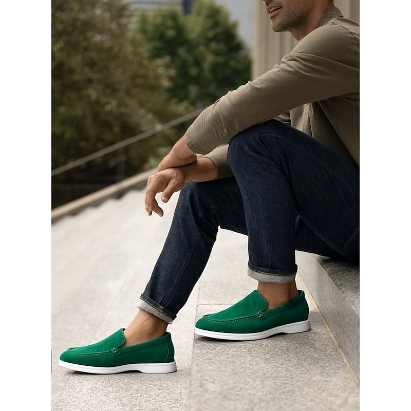Men's Green Suede Casual Loafers with Lightweight Non-Slip White Sole, Comfortable Slip-On Design, and Breathable Material 24