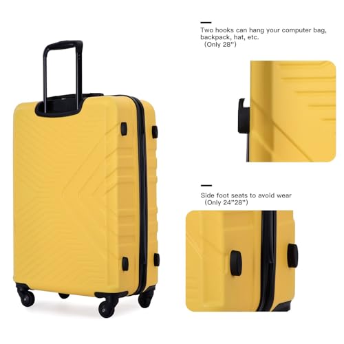 3-Piece Luggage Set - ABS Hard-Shell Suitcases with Spinner Wheels, TSA Lock, and Organized Interior (20"/24"/28"), Yellow 4