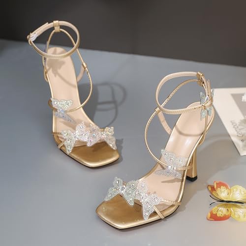 • 【Butterfly Heels】The Heeled Sandals have a unique and trendy design featuring rhinestone-encrusted butterfly accents. The open-toe heels design and square cut-out shape add an extra touch of elegance to these shoes, making butterfly heels perfect for any dressy occasion.