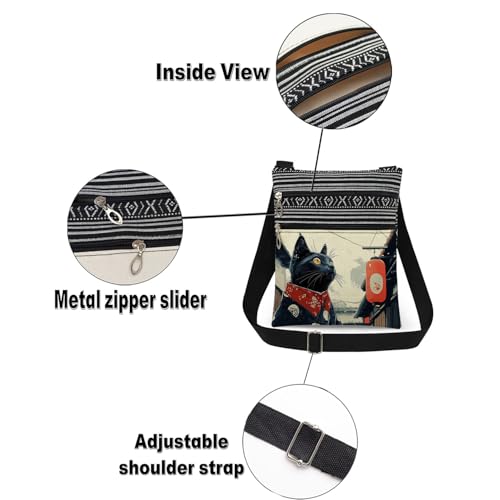 Japanese Style Black Cat Print Crossbody Bag Outdoor Travel Adjustable Shoulder Strap Messenger Bag Unique Japanese Present​​ Birthday Gift Christmas for Cat Lover 5