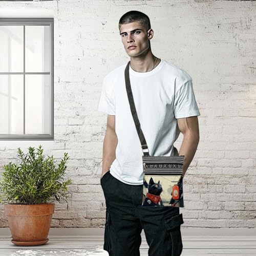 Japanese Style Black Cat Print Crossbody Bag Outdoor Travel Adjustable Shoulder Strap Messenger Bag Unique Japanese Present​​ Birthday Gift Christmas for Cat Lover 1