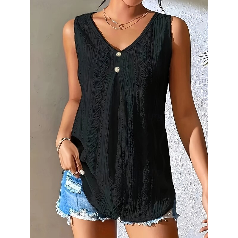 More information about Women's Camisole Tank Top Solid Color Daily Casual Sleeveless V Neck Regular Tops Daily Buttons Black White Summer Spring
