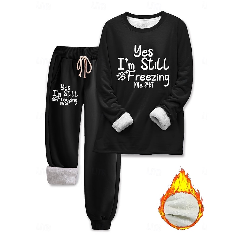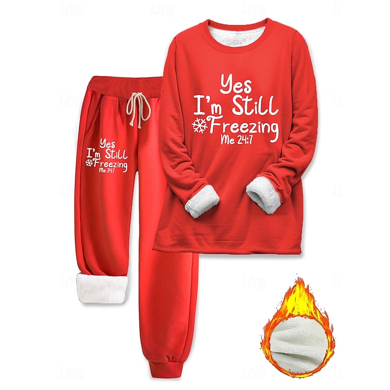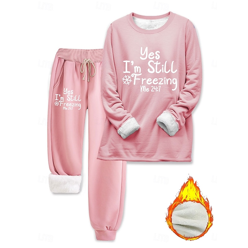 More information about Women's Pajamas Set Fleece Lined 2 Pieces Sweatshirt Tracksuits Warm Comfort Soft Pullover Long Sleeve Long Pant Crew Neck Letter Elastic Waist Home Daily Bed Dark Pink Blue Gray Fall