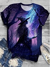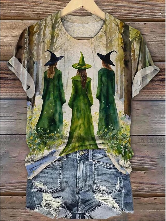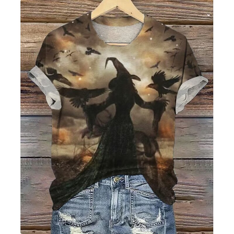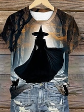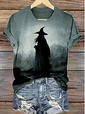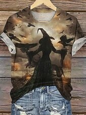 More information about Halloween Women's T shirt Witch Graphic Vintage Stylish Classic Short Sleeve Crew Neck Round Neck Regular Tops Daily Weekend Print Light Brown Dusty Blue Purple Orange Brown Summer Spring
