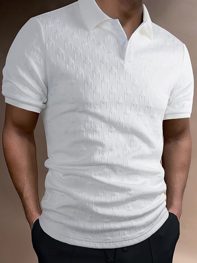 More information about Men's Golf Shirt Knit Polo Business Casual Classic Short Sleeve Fashion Modern Solid Color Houndstooth Buttons Summer Spring Regular Fit White Golf Shirt
