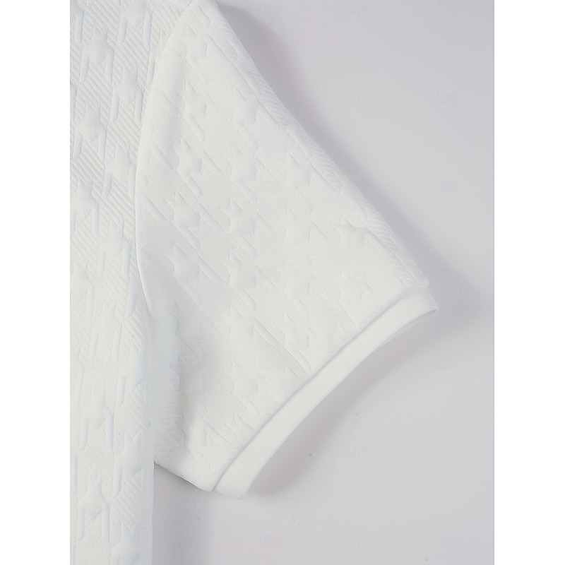 Men's Golf Shirt Knit Polo Business Casual Classic Short Sleeve Fashion Modern Solid Color Houndstooth Buttons Summer Spring Regular Fit White Golf Shirt 4