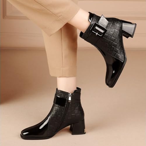 • Elegant Design: The elegant toe design can be easily matched with various outfits, The Side Zipper makes it easy to put on and take off, And the Buckle Strap and Patent leather splicing design add more fashion to the boots, making them a perfect daily essential.