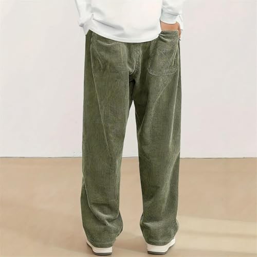 Mens Pants, Corduroy Fabric Men's Daily Casual deep V Striped lace-up Loose Elastic Waist Pocket Pants with Pockets 6