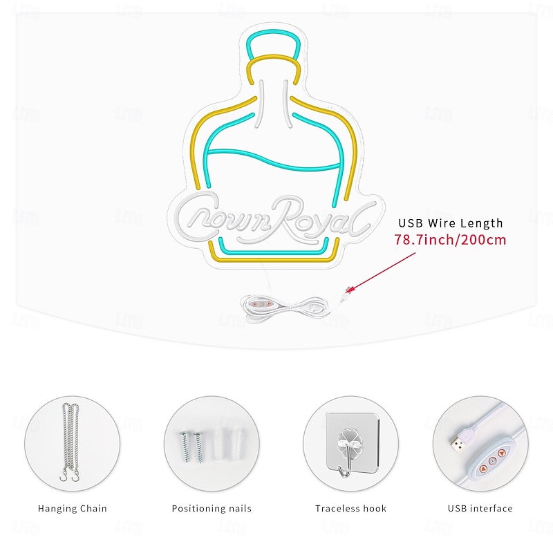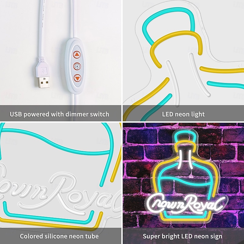 $89.99 - Crown Royal Bottle Shape LED Neon Sign Light Bar Light USB Powered for Home Bedroom Bar Club Pub Party Wall Art Decoration Halloween Hanging Bar Club Light 2025. Shop for cheap Neon LED Lights online? Buy at lightinthebox.com on sale today!