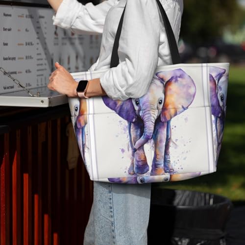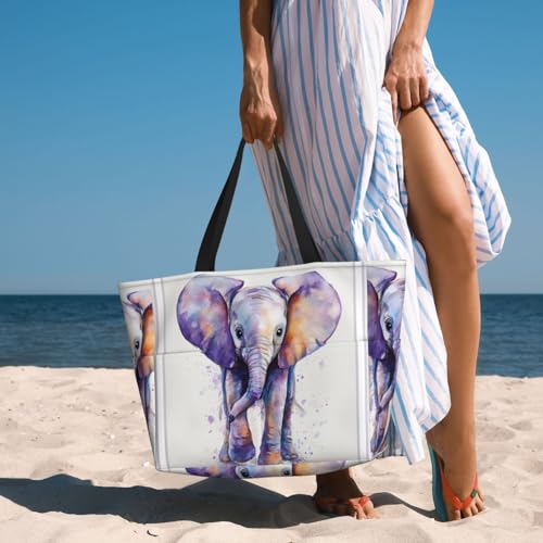 • 7 Pockets Design: Cute Baby Elephant Watercolor Beach bags for women has 4 large outer pockets, 1 small inner pockets, 1 inner zipper pocket and 1 inner big wet pocket for better sort and and organize your items. Sandproof tote bag with dimensions of 17.7x6.7x15 inch and weighing only 0.89 pounds.