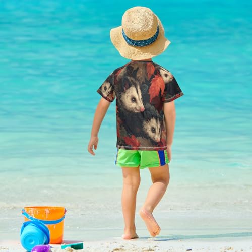 Boys Short Sleeve T-Shirts Leaves Opossum Rat Rashguard Kids Swim Shirts Sun UPF 50+ 1