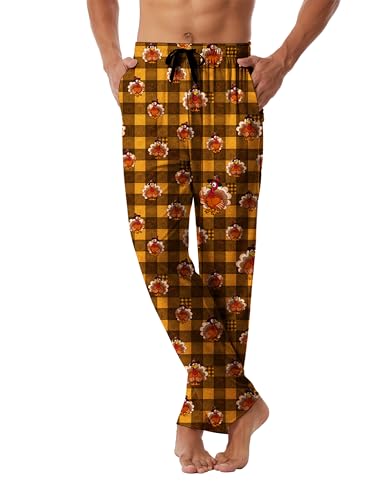 • 【High-Quality Pajama pants】Thanksgiving pj pants is made of polyester and spandex, the fabric is soft and comfortable, breathable and light weight to provide you with comfort. This pj pants have 6 sizes: S/M/L/XL/XXL/3XL, with a loose fit design, easy to wear and casual, perfect for most teens and adults. PLEASE NOTE: Please read the size chart carefully before purchasing so that the size fits.
