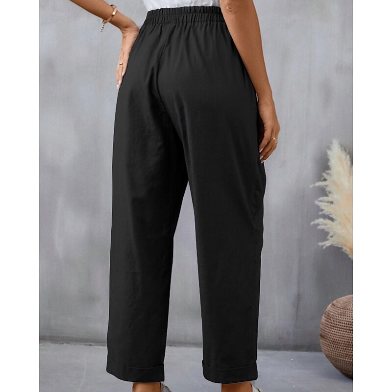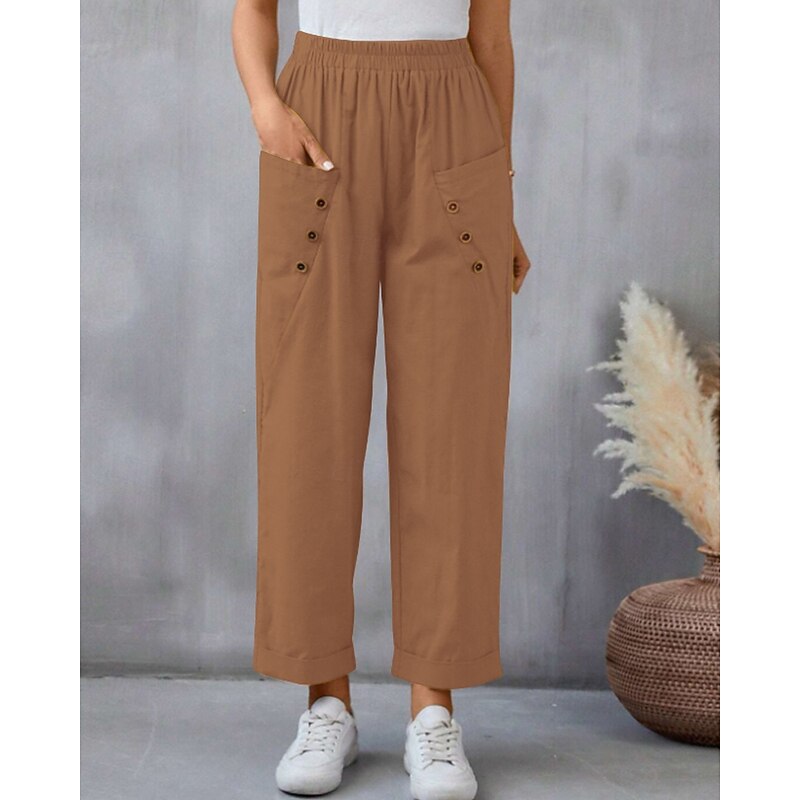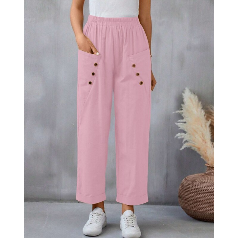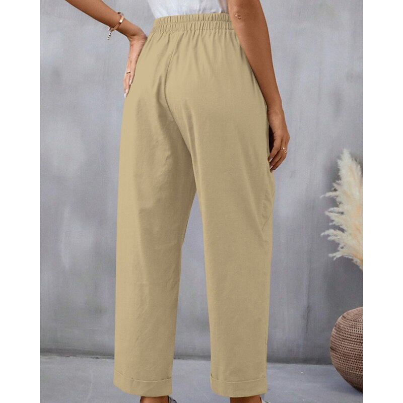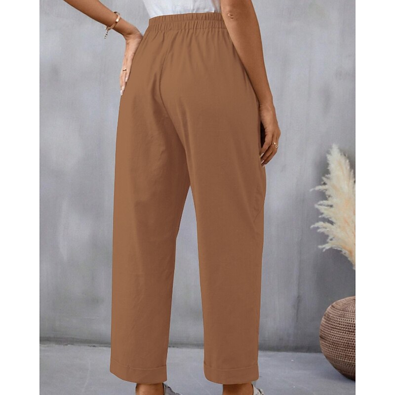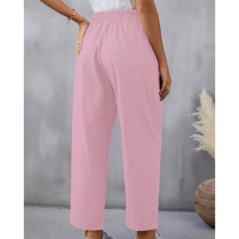 HOT ! Women's Cotton Linen Pants Slacks Fashion Streetwear Full Length Natural Plain Pocket Elastic Waist Comfy Comfortable Going out Weekend Camel Black Pink Blue Summer Regular Fit