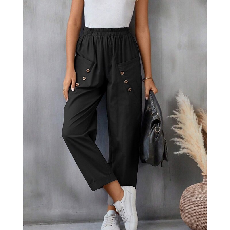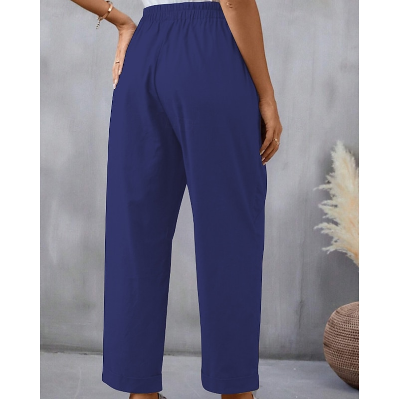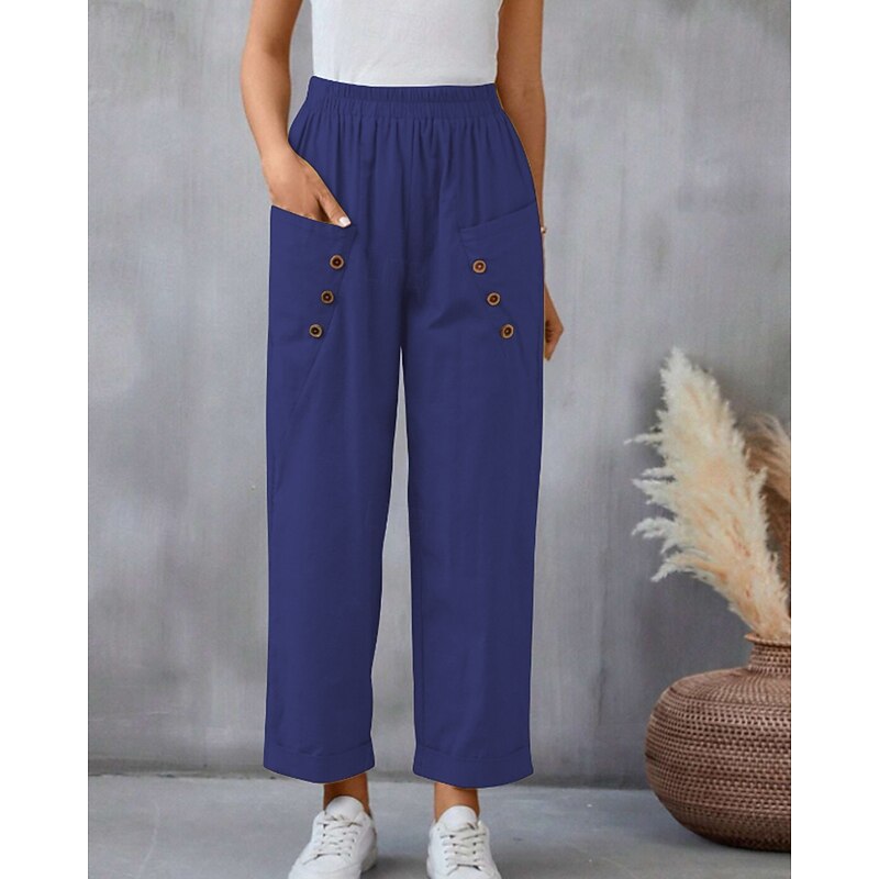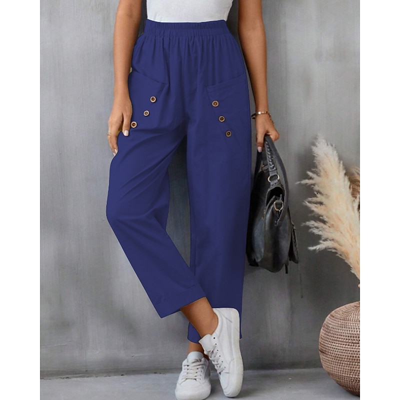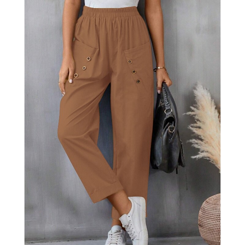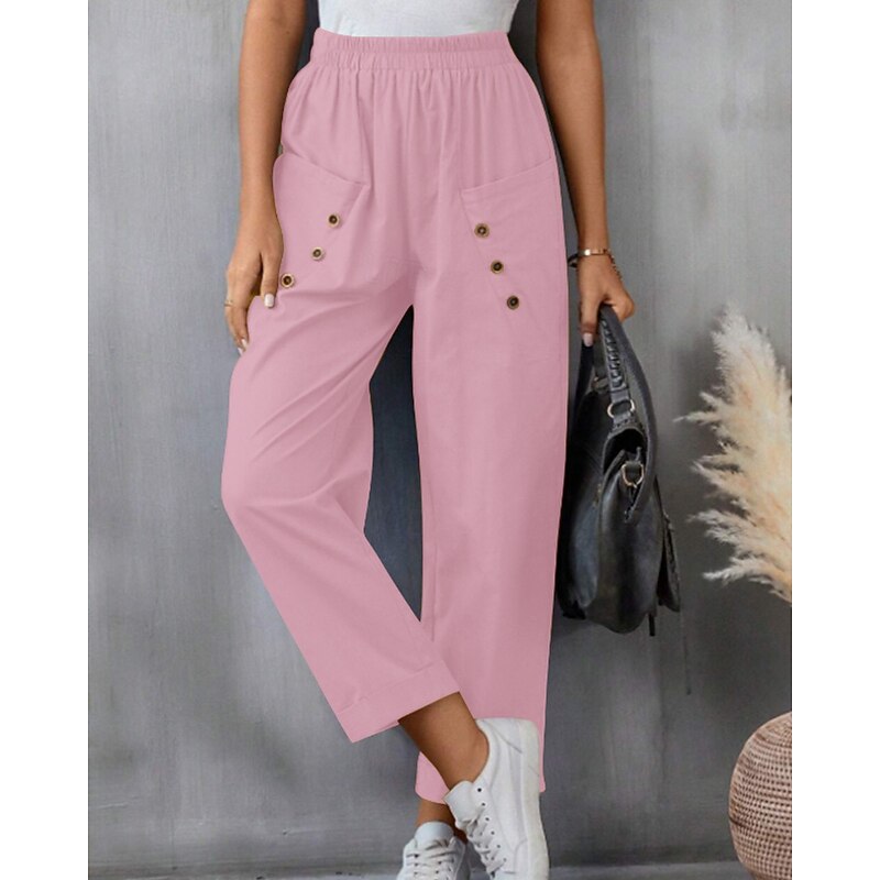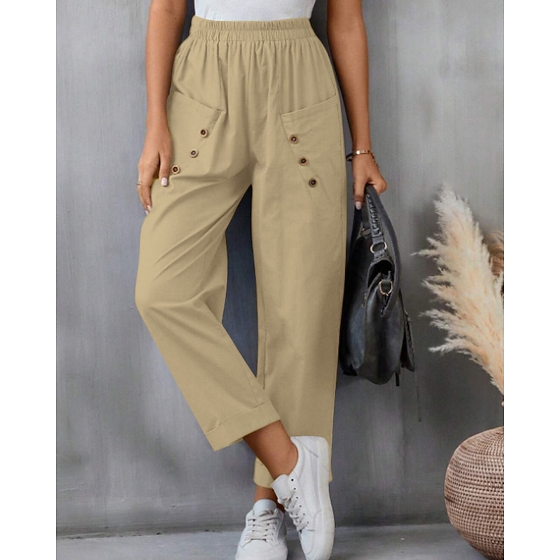 HOT ! Women's Cotton Linen Pants Slacks Fashion Streetwear Full Length Natural Plain Pocket Elastic Waist Comfy Comfortable Going out Weekend Camel Black Pink Blue Summer Regular Fit