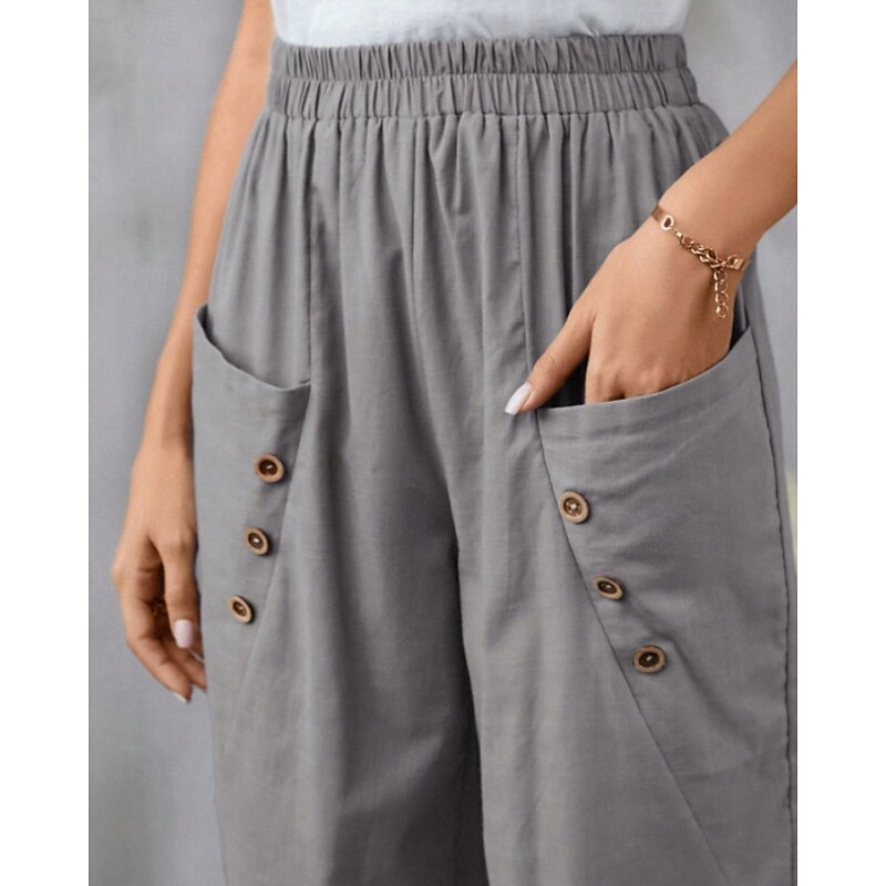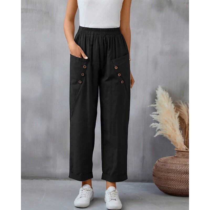 More information about Women's Cotton Linen Pants Slacks Fashion Streetwear Full Length Natural Plain Pocket Elastic Waist Comfy Comfortable Going out Weekend Camel Black Pink Blue Summer Regular Fit