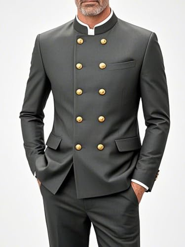 • 【Features】--Men's Chinese Tunic Suit,Mens 2 Piece Suit Gold Button Men Formal Suits.Double Breasted Gold Button Blazer Pant Set