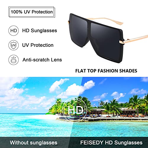 • FEISEDY Unique design: stylish frameless flat top oversized sunglasses, with sturdy metal hinges and metal temples, can extend the use of sunglasses and is a stylish match. Suitable for a wide range of face shapes.