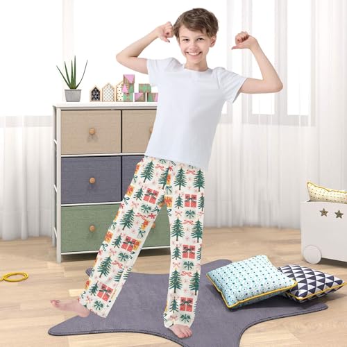 ALAZA Christmas Green Pine Tree Snowflake White Pajama Pants Long Sleep Pant Pajama Bottoms Elastic Waist with Pockets 6