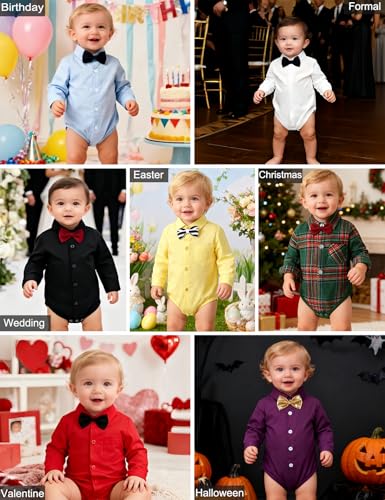 A&J DESIGN Infant Baby Boys Dress Shirt Bodysuit Gentleman Formal Wedding Long Sleeve Rompers 5
