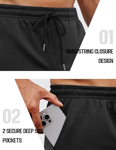 • Feature Design: Mens athletic gym shorts with drawstring, elastic waistband keep shorts from sliding down during jogging. 2 deep side pockets can store your phone and wallet, preventing stuff from dropping out