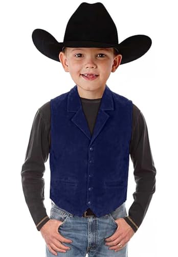 Retro Boys Suede Leather Sleeveless Suit Vest Western Vintage Cowboy Waistcoat 6