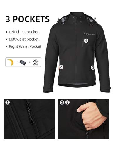 Men's Lightweight Softshell Jacket with Removable Hood, Breathable Water Resistant 5000 Fleece Lined Hiking Jackets 3