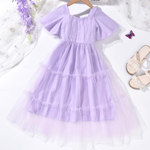 fioukiay Girls Tiered Tulle Maxi Dress Flower Girl Dresses Vintage Ruffle Sleeve A-Line Formal Bridesmaid Wedding Party Dress 6