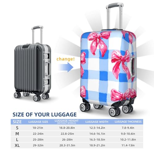 Blue Checkered Bow Elastic Travel Luggage Cover, Washable Spandex Suitcase Protector, Anti-Scratch Fits 18-32 Inch 7