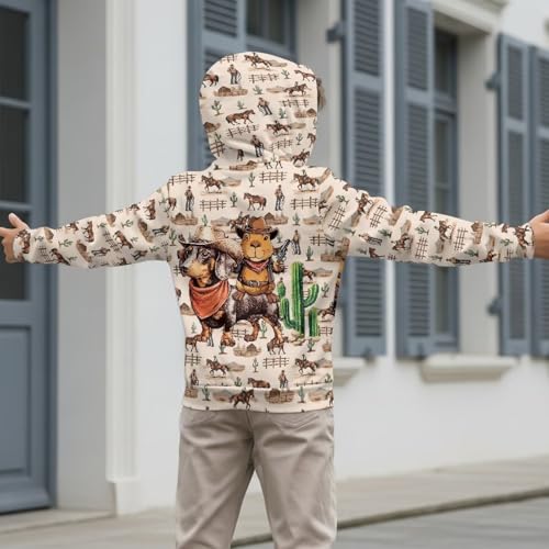 Boys Zip Up Hoodies Western Long Sleeve Hooded Sweatshirts 6-16 Horse Aesthetic Zip Up Sweatshirts 3