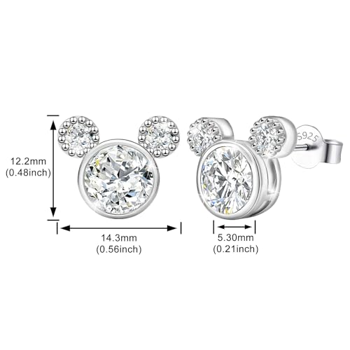 Mouse Earrings Sterling Silver Cute Animal Stud Earrings for Women Hypoallergenic Cubic Zirconia Lovely Earring for Sister 4