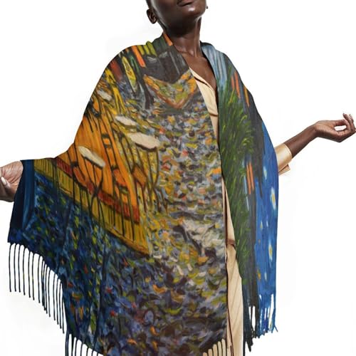 Shawls Tassel Wraps Warm Soft Winter Lightweight Cashmere Long Scarf for Women Gifts Daily Travel Office Van Gogh Painting Print 6