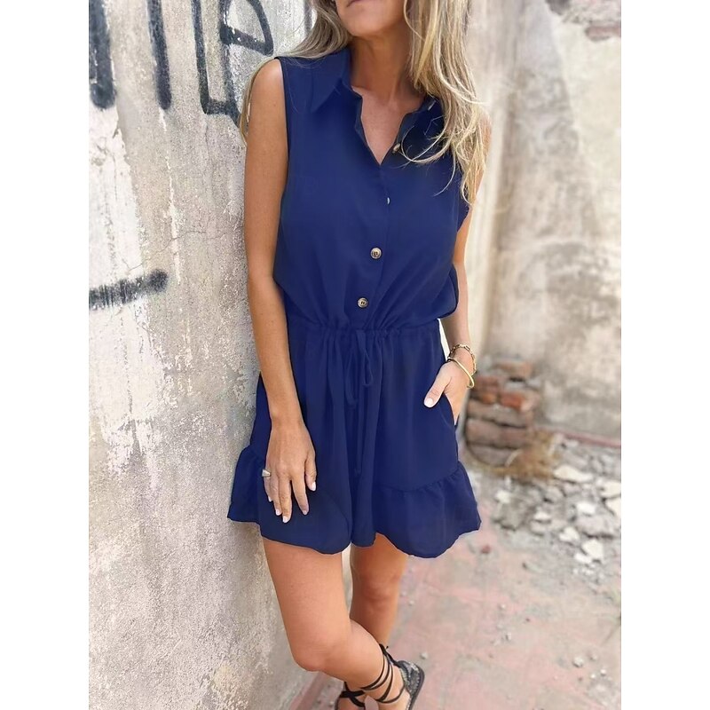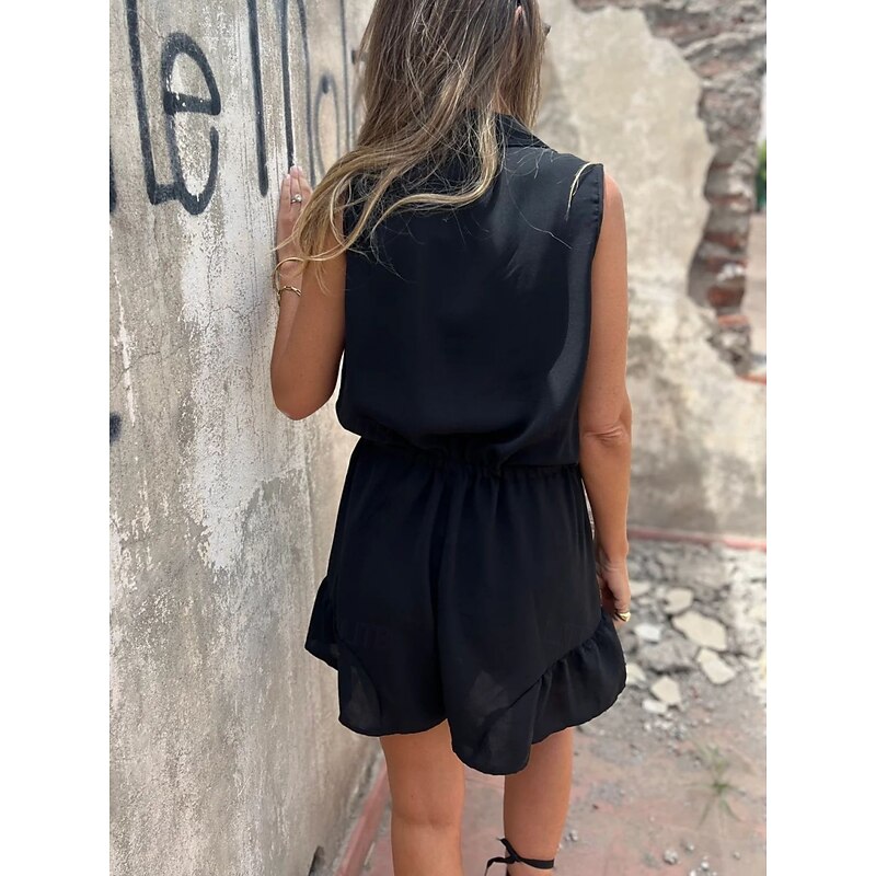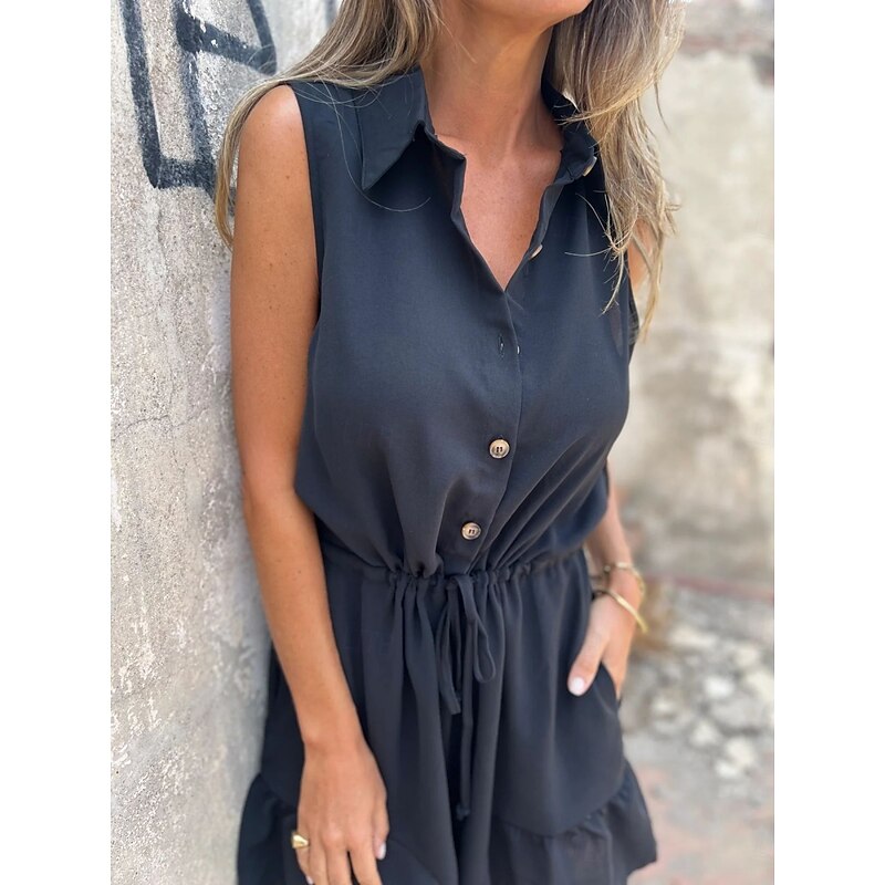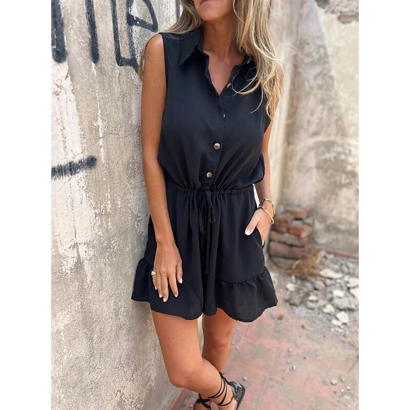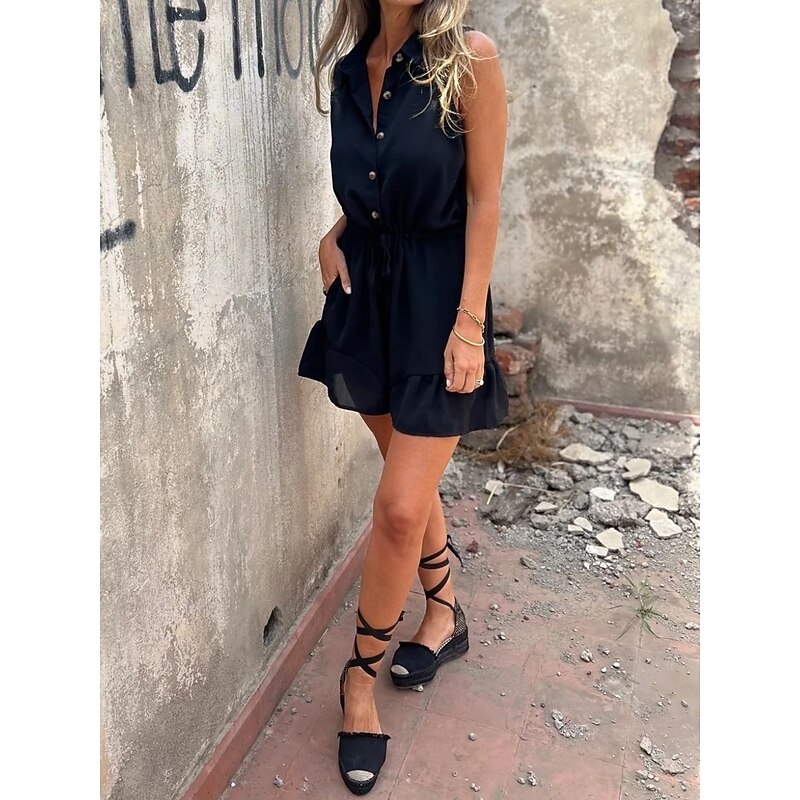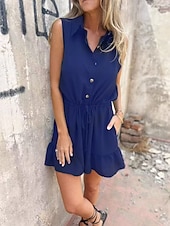 More information about Women's Normal Romper Ordinary Solid Color Sleeveless Baggy Shorts Shirt Collar Buttons Pocket Daily Regular Fit Black Blue Khaki Summer