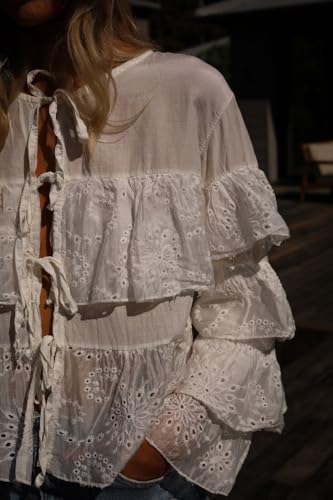 More information about Women Chiffon Blouse Top Ruffle Trim Tie Front Shirt Long Sleeve Flowy Cardigan Lace Frilly Going Out top