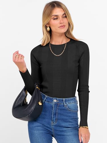 More information about ANRABESS Women's Long Sleeve Slim Fit Crewneck Lightweight Sweaters 2025 Fall Winter Basic Fitted Rib Knit Pullover Tops