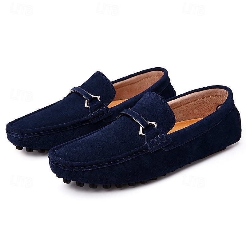 Men's Suede Driving Moccasins, Rich Burgundy with Classic Bit Buckle, Luxurious Comfort Casual Shoes 24