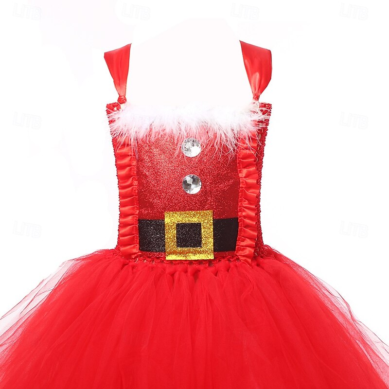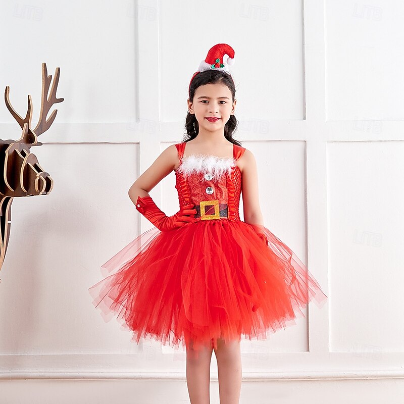 More information about Santa Claus Mrs.Claus Outfits Tutu Santa Suits Girls' Christmas Kid's Christmas New Year Christmas Eve Christmas Party New Year Eve Dress Headpiece Gloves