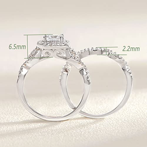 Wuziwen Halo Wedding Ring Sets for Women S925 Silver Engagement Rings Wedding Band Set for Her CZ 6