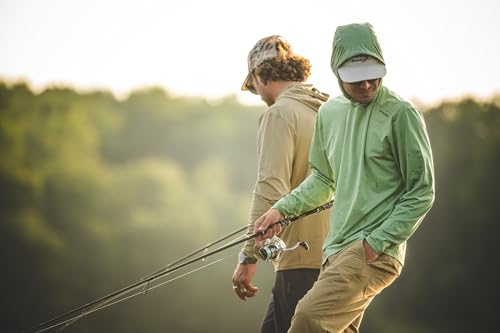 • UPF 50+ SUN PROTECTION: Engineered with fabric that has a UPF 50+ rating, this long sleeve fishing shirt provides superior sun protection, blocking 98% of the sun's harmful UV rays. The integrated hood offers additional coverage for your neck and head, ensuring complete protection during sunny days on the water.