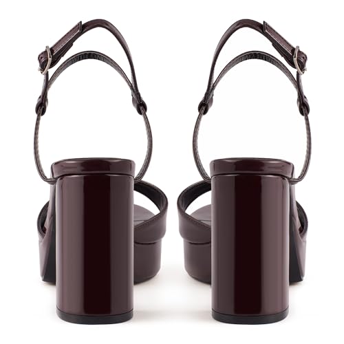 Taytoe Black/Burgundy Platform Chunky Heels for Women, Open Round Toe 4 inch High Heeled Sandals with Buckle Ankle Starp 5
