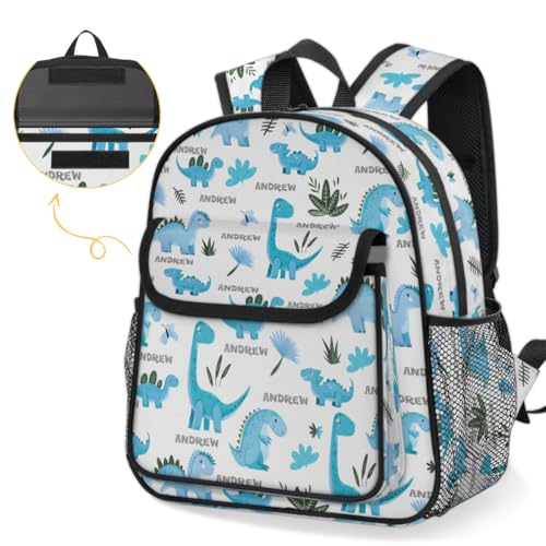 HOT ! Personalized-Toddler-Backpack - Custom Kids Backpack for Boys & Girls 3-6 Years, Lightweight Polyester with Safety Whistle Strap, Small Daycare Bookbag | Dinosaur Text Cyan