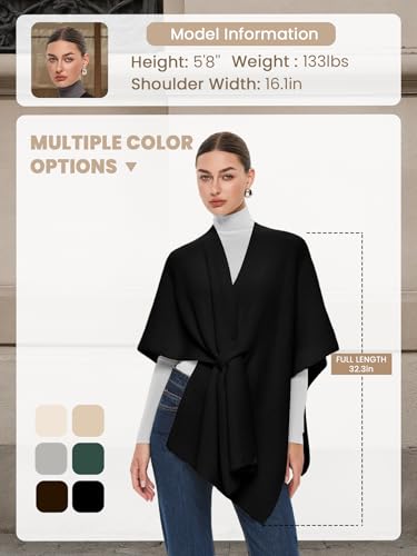 • Unique Sweater Cape: Features a signature pull-through closure that creates an asymmetrical drape and relaxed silhouette knit poncho for women fashion, self-adjustable front tabs create a custom fit. In timeless solid color hues with ribbed knitted texture, it’s the capsule wardrobe item for the classic style