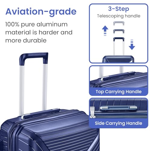 Luggage Sets 4 Piece(14/20/24/28), Expandable Lightweight Suitcase with 4 Double 360 Degrees Mute Spinner Wheels PP Materials Durable TSA Lock Travel Luggage Navy Blue 7
