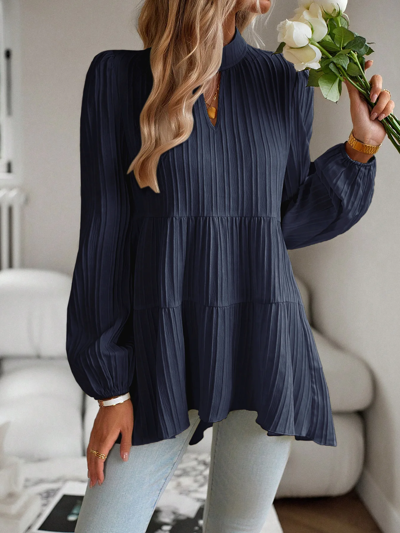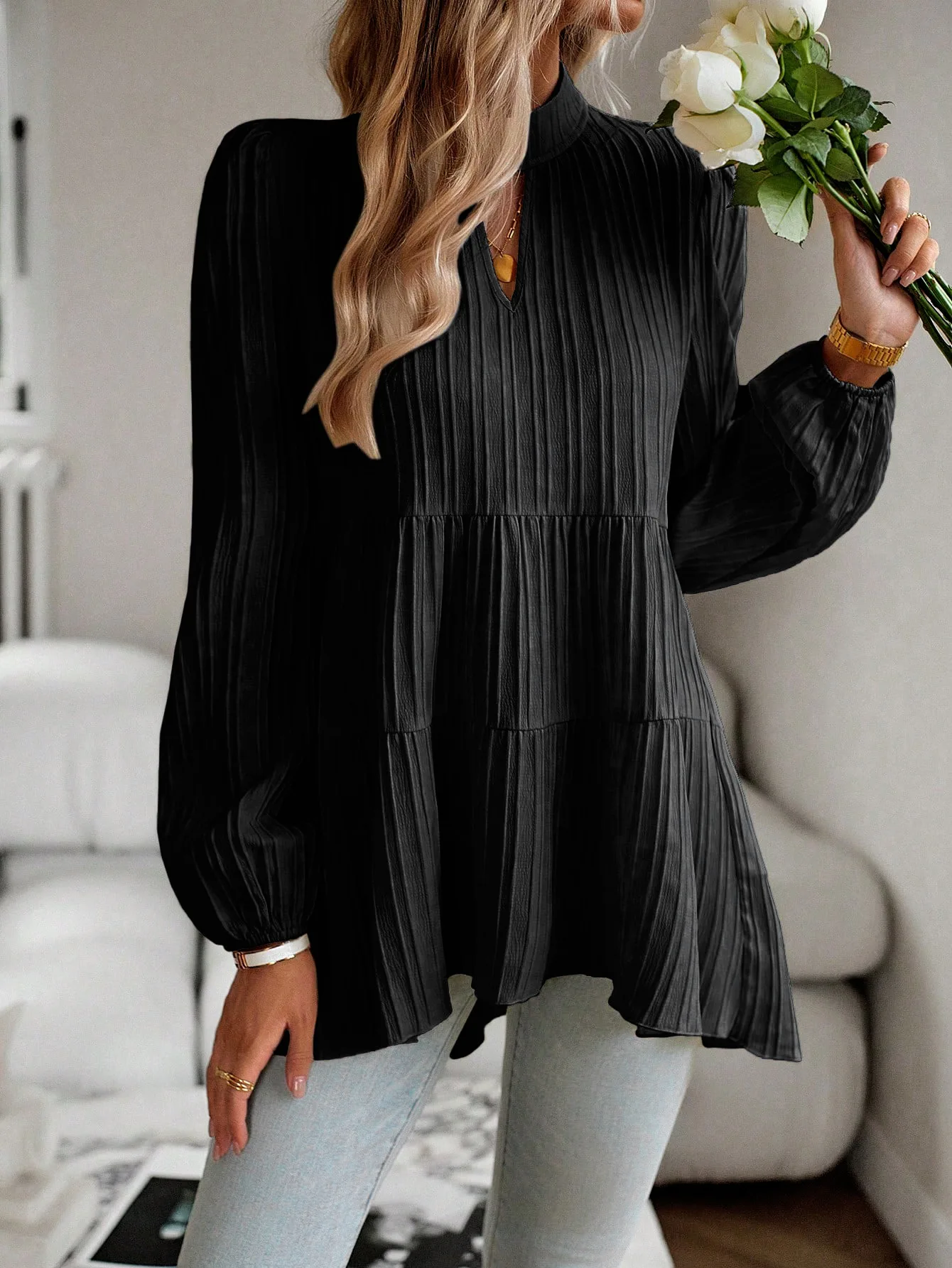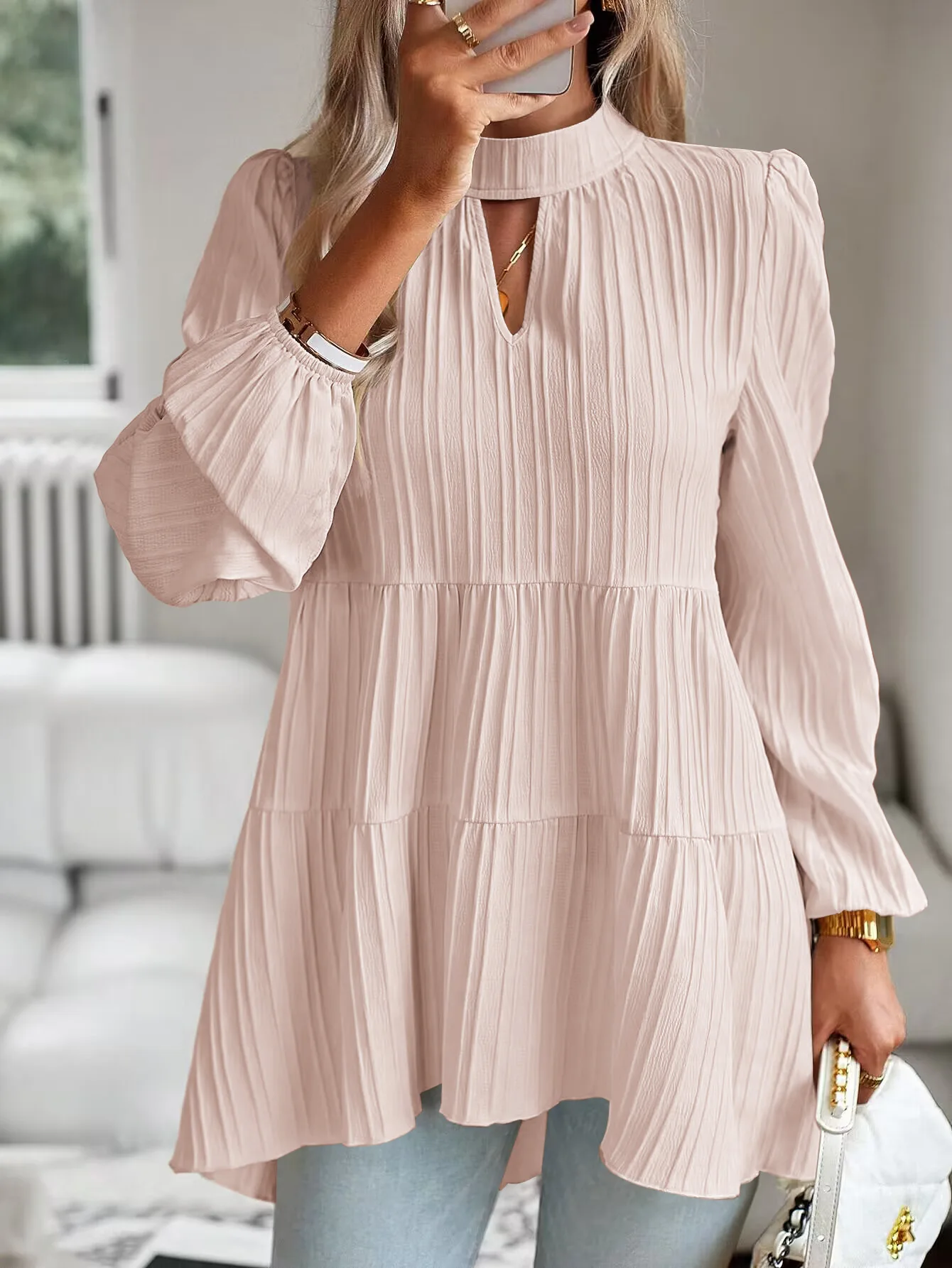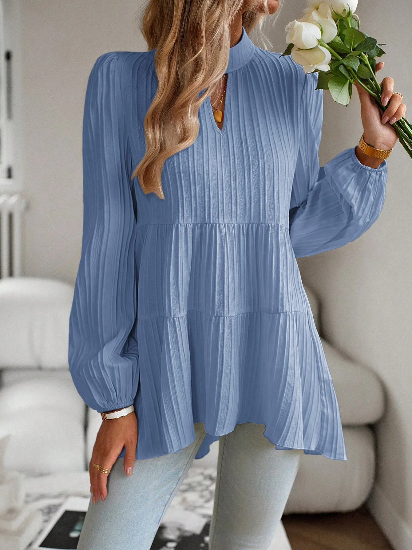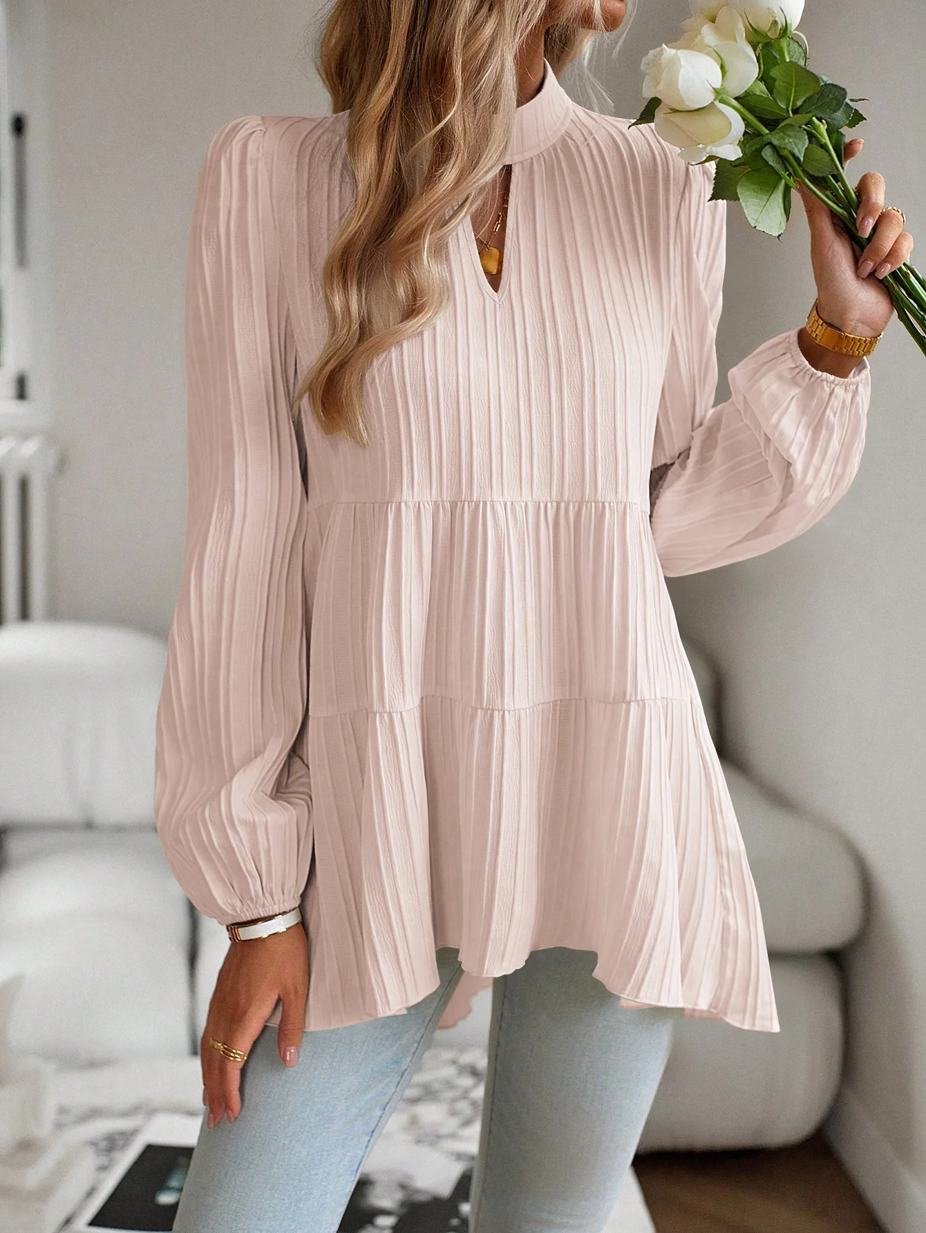 The Solid Casual Loose Blouse Vintage Elegant Blouse. S-XL feels okay in daily use so far.